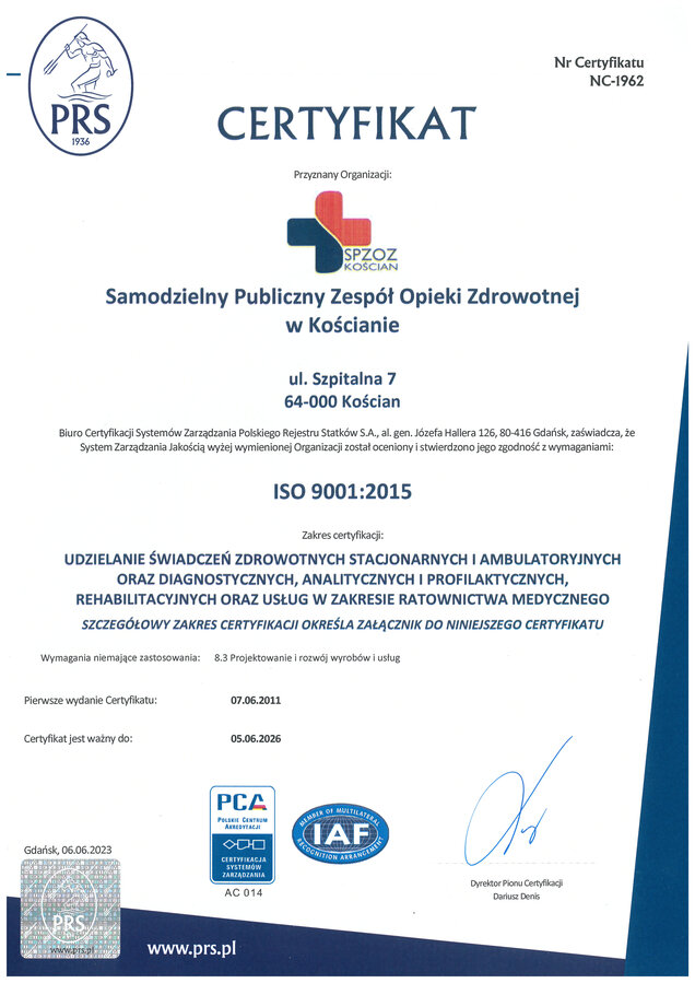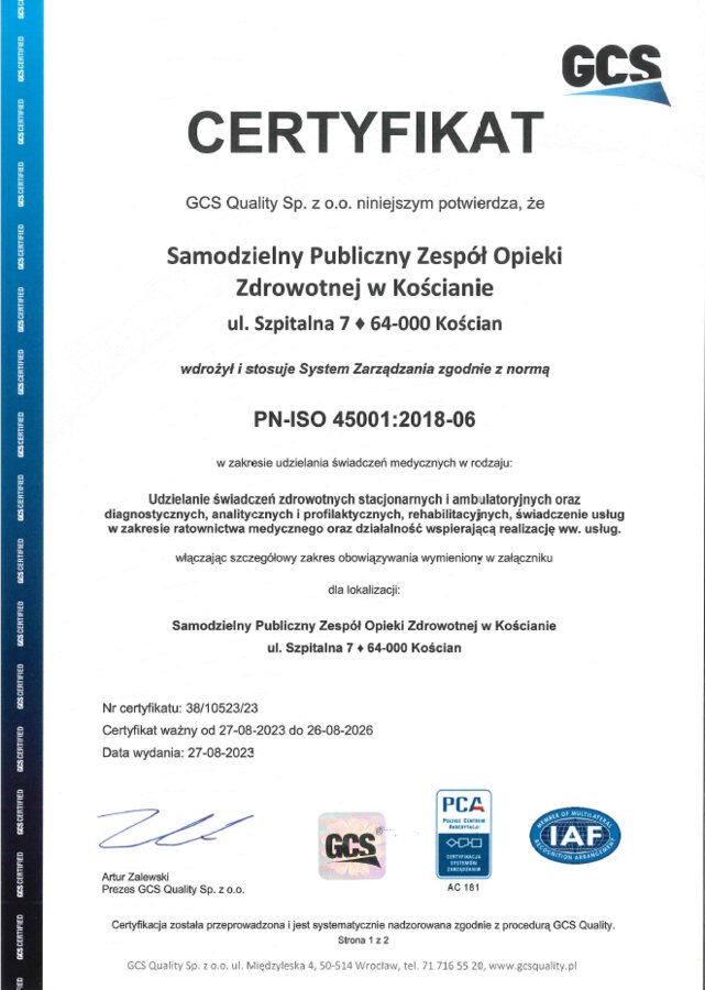Dział ambulatoryjnej rehabilitacji leczniczej w Kościanie